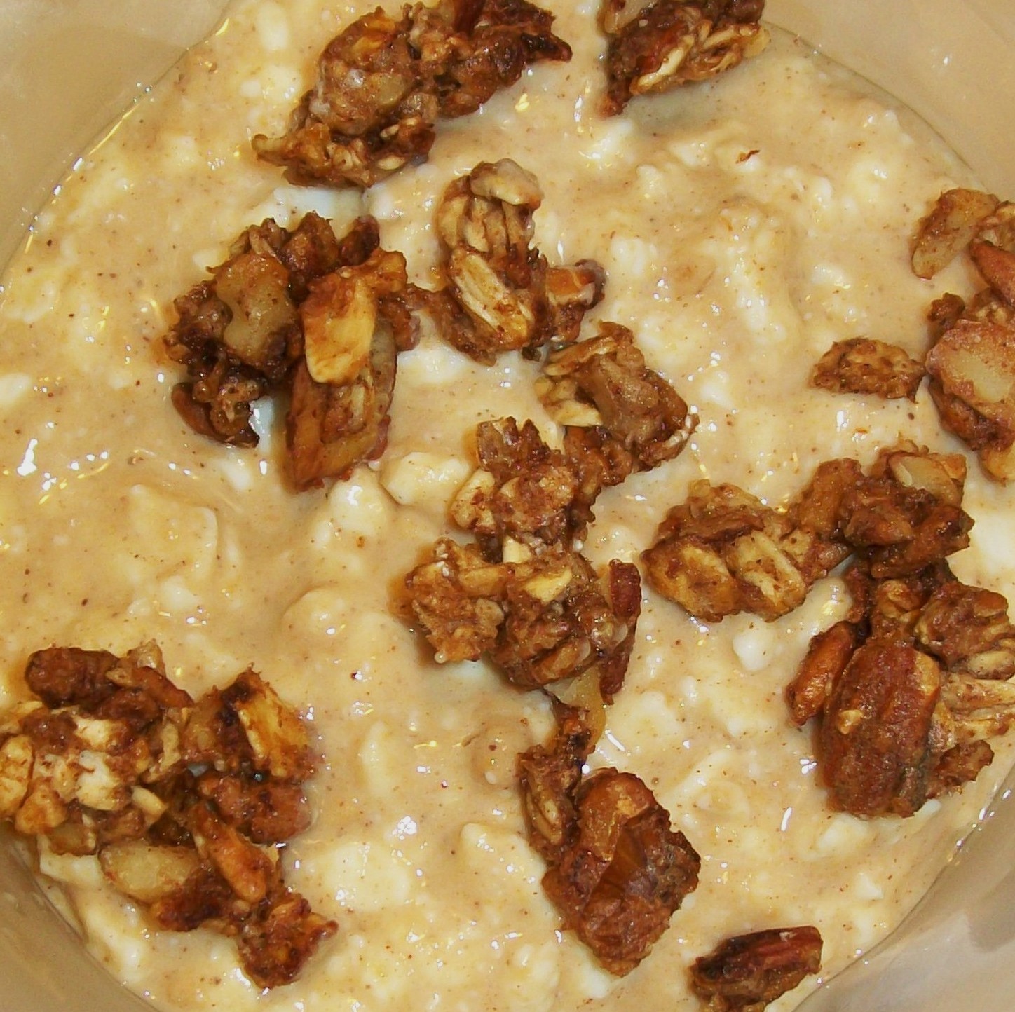 Cottage Cheese with PB2, sugar free maple syrup, cinnamon, some splenda, and home-made granola.