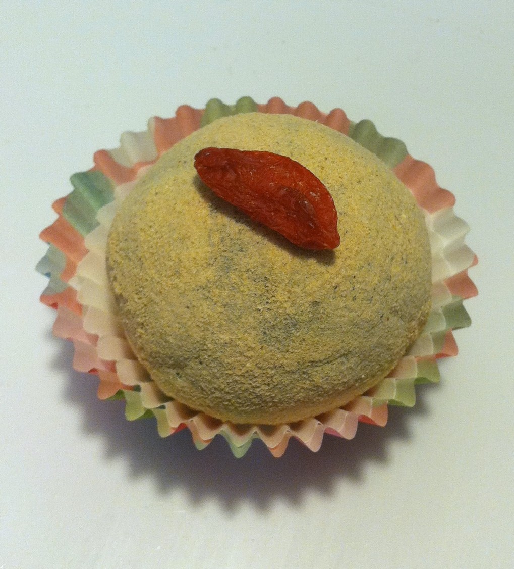 5/ Roll in Lucuma and top with a single goji berry. (Makes 8 servings of 4 per serving)