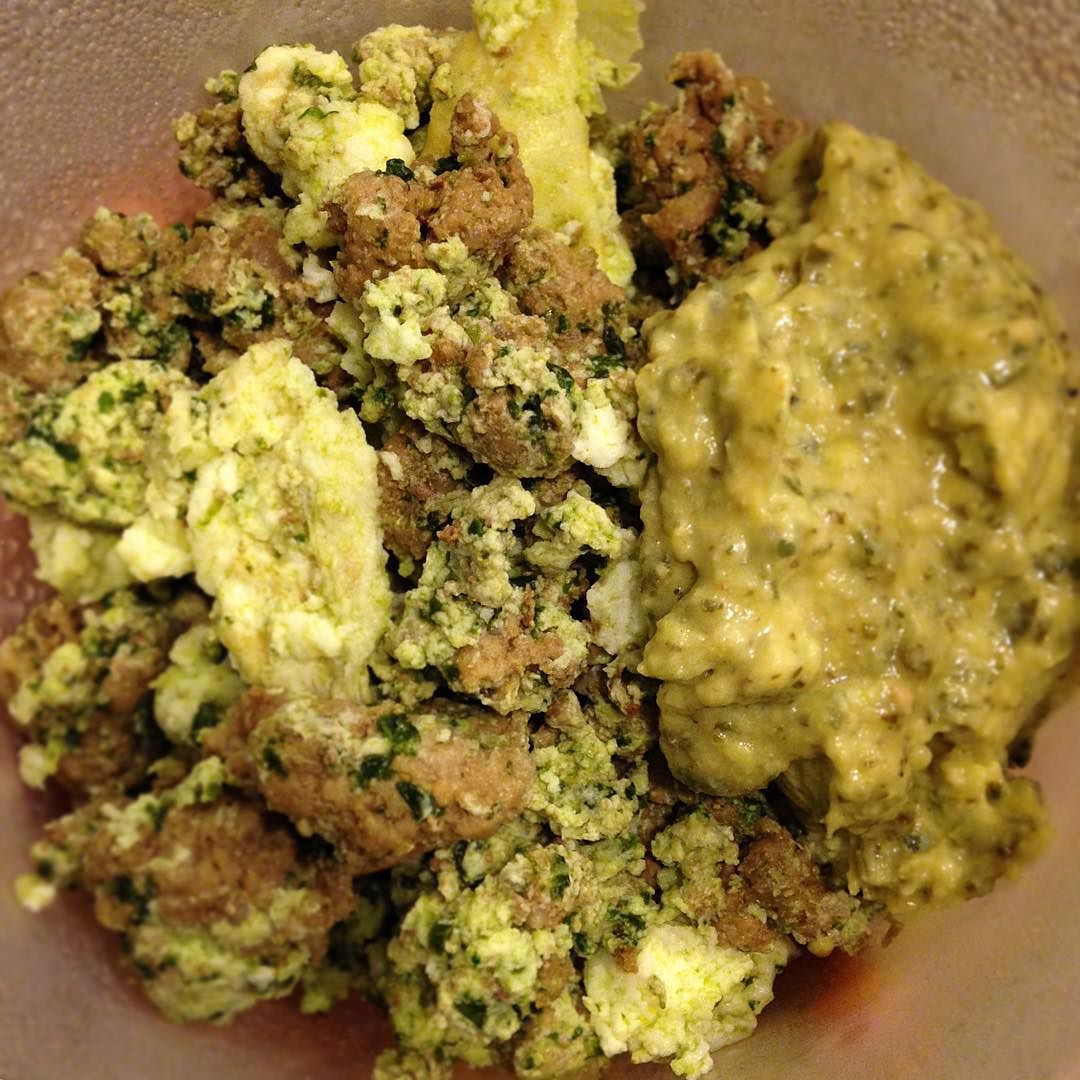 Method for the scramble: Sauté meat in a pan on the stove with cilantro until the meat is cooked / browned. Add eggs or egg whites and cook until set / most of the liquid cooks off. That is it…you’re done! It’s that simple! You can also add veggies for extra bulk/volume if desired. For 6 day’s worth of breakfasts (about 4 oz of the scramble), I used 1 lb 96/4% lean beef and about 1.5 cups liquid egg whites. I used 1 container of Gourmet Garden cilantro. You can find it in the cooler at Wal-Mart or Publix. You can also find the Hope Food’s Hummus at Wal-Mart or Publix.