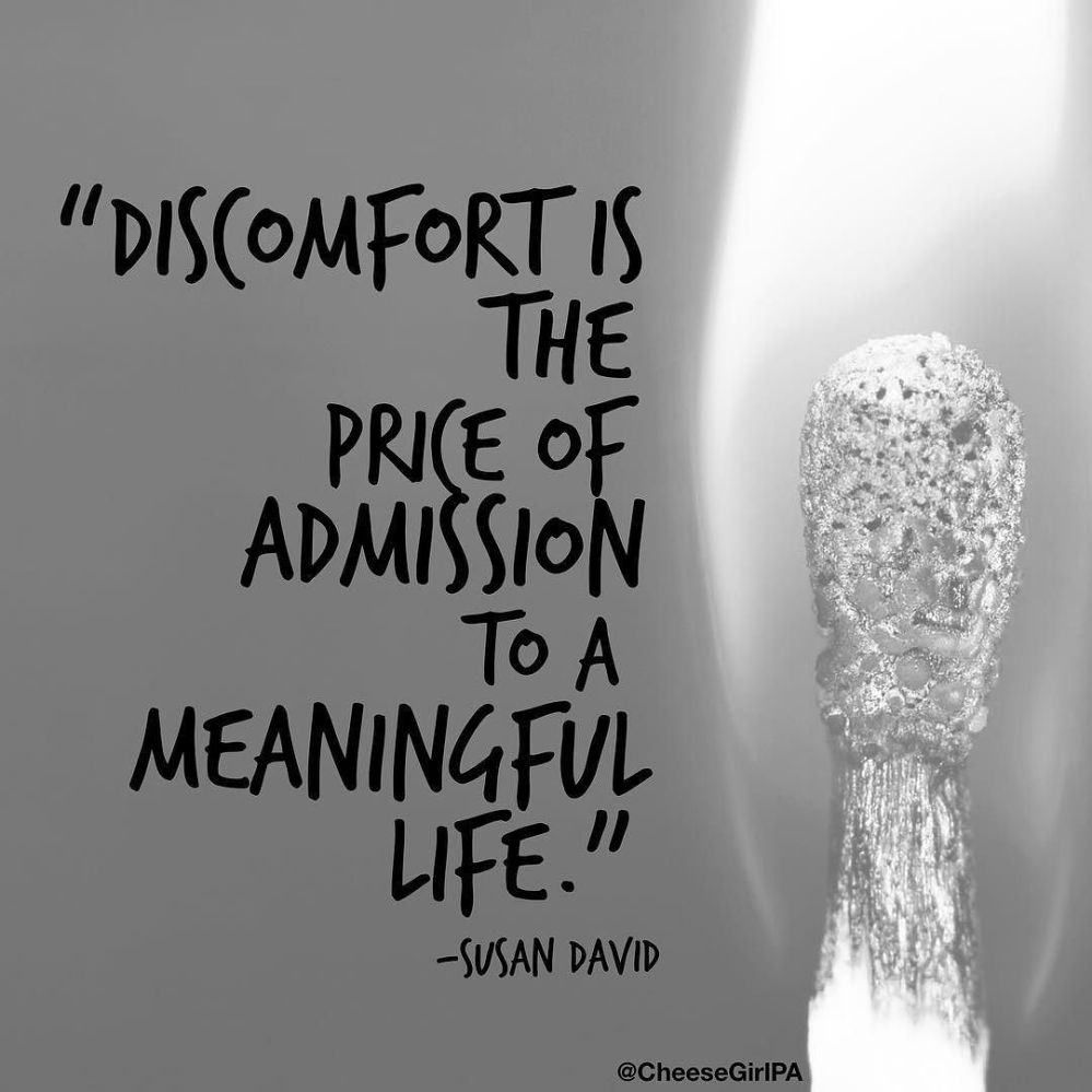“Discomfort is the price of admission to a meaningful life. We experience our greatest levels of growth, we experience our greatest achievements when we are able to face into stuff that makes us uncomfortable—even if it feels difficult to do so—and we make changes in accordance with that.” -Susan David PhD