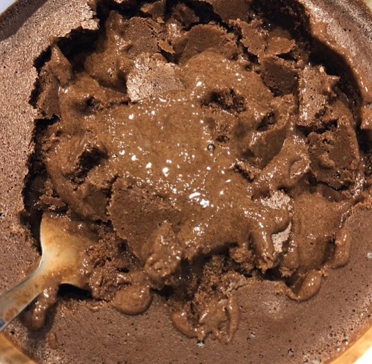 Blend until smooth, pour into a bowl and freeze for 30-60 minutes. You can always enjoy ASAP, but I love the result of freezing! Soft inside like a molten chocolate lava cake.