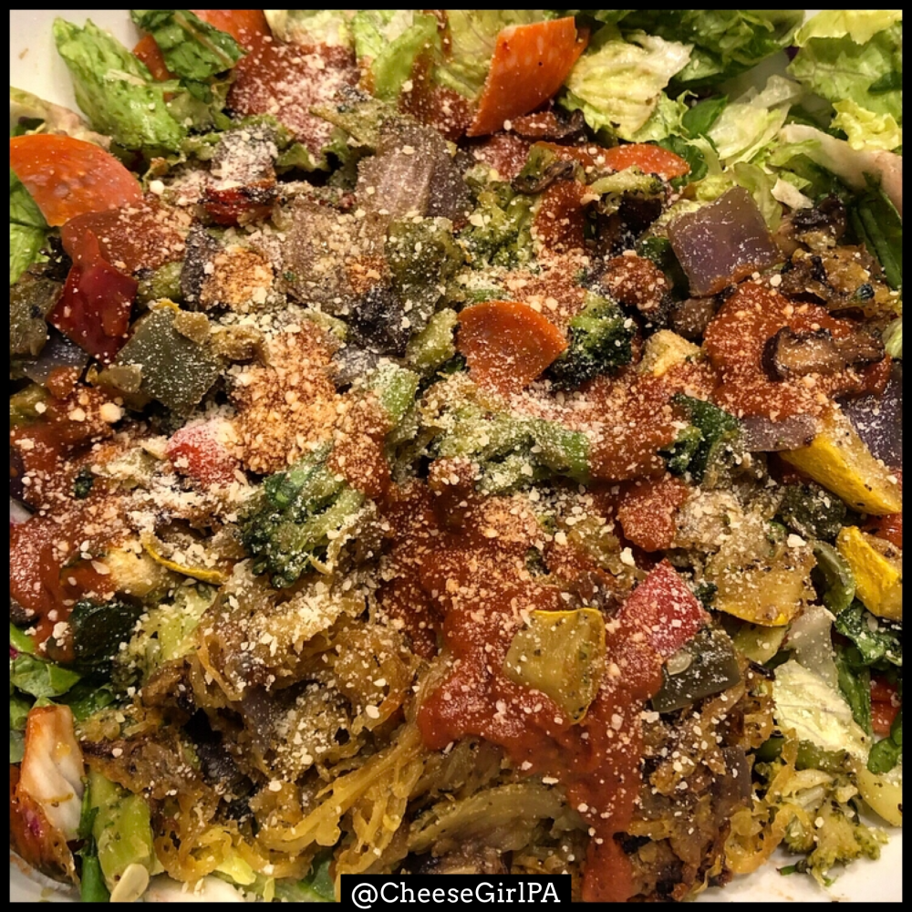 - My favorite combination of veggies for this recipe is roasted broccoli, yellow squash, zucchini, mushrooms, onions, and roasted spaghetti squash (cook the squash, then roast the noodles on a sheet pan; trust me, the “caramelized” flavor of roasting them is 💯!)