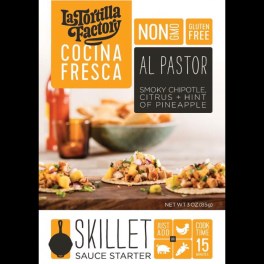 - La Tortilla Factory Al Pastor Smokey Chipotle Citrus + Hint of Pineapple Skillet Starter Sauce (see photo below)