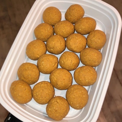 Anyhow, my forgetfulness aside, this recipe is so delicious and so simple! Outside of having to grind the oats into a flour, the rest is just mixing everything together in a bowl, letting it chill in the fridge for a couple of hours, then rolling the dough into balls. You can either store them in the fridge or the freezer. You could also mold them into bars instead of bites and adjust macros accordingly.