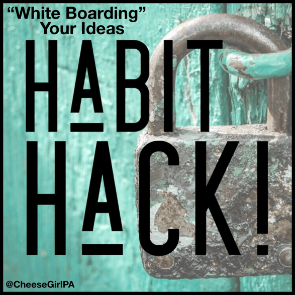 I have several white boards around my master bedroom because it also serves as my gym. I tend to get the best ideas while working out—this is proven by the way; physical motion activates the brain in different ways then sitting still does! I stare at the board while I’m lifting and listening to podcasts on business, spiritual, mental, emotional growth, etc. I find that the combination of physical movement and mental stimulation makes things ‘click’ in random “ah-ha!” moments.