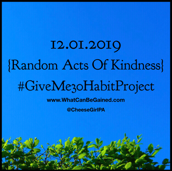 I felt like the holidays were a good time for this challenge, because we are all more stressed and busy than usual. Many people also struggle with their mood during this season. Not only will you get the opportunity to brighten the day of someone else, but he will brighten yours in the process.