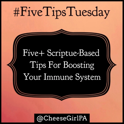 Something a little different this week for #FiveTipsTuesday. I know that we are all being very diligent right now to do whatever we can to boost our immune system and guard against illness. How many of us are being as diligent to guard ourselves spiritually right now? For myself personally, and many who have reached out, this chaotic event has served as a reminder to focus on things that outlast this lifetime. Remember that God is our Healer and Protector, both spiritually and physically. Here’s 5+ scripture-based tips to help us be as diligent with our spiritual well-being as we are with our physical health. Fun Bonus: each of these correlates to evidence-based immunity-boosting practices for our physical bodies as well!
