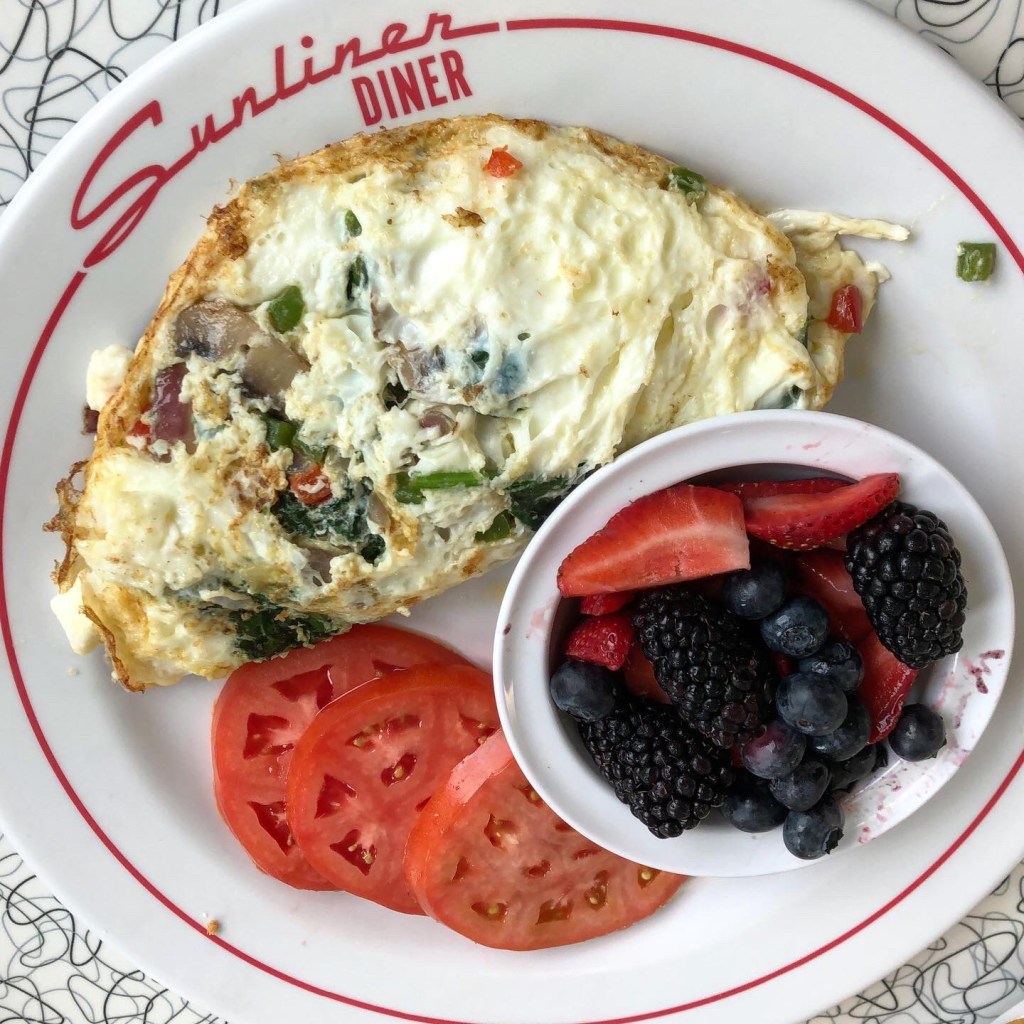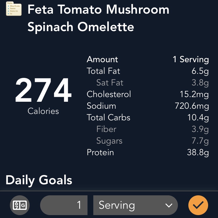 This is one of my favorite #MinimalistMealPrep recipes for lunch or dinner. It’s also something I find is widely available on restaurants. Most places are willing to accommodate an egg white only omelette and/or adding/changing ingredients if they offer regular omelettes on the menu. I’ve never had anyone turn down my special requests! I will have them add onions and bell peppers when I order it at a restaurant, but the 5 ingredients I use at home are: egg whites, feta, mushrooms, tomatoes, and spinach. (See macros below for my version).