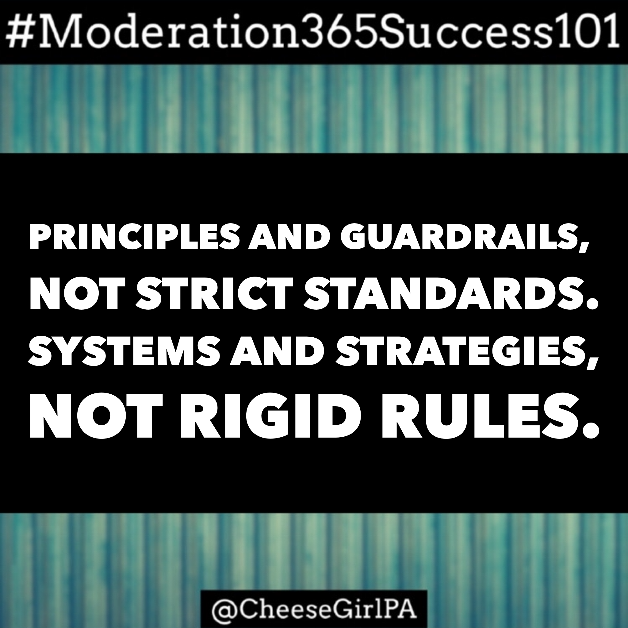 Instead of rules, learn to look at implementing systems and strategies, guardrails and boundaries. A system is a flexible process, not rigid rules. Principles are universal (and Biblical) truths which apply at all times. They help you make decisions that honor the Lord and allow you to feel your best. Guardrails and boundaries keep you from stepping outside of what you know works for you mentally and physically. Strategies are #HabitHacks which make the process less stressful and more enjoyable. I’ll be teaching more of these as part of a crash course in an ongoing post series called #Moderation365Success101. You can use that hashtag to find these posts as I add to them. I have shared before how much #Moderation365 has helped me in my own #FoodFreedom journey. I trust this approach so much that I’m getting certified in the framework and can’t wait to share more!