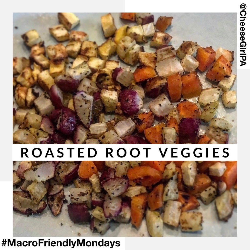 Ever since trying Kim Hoeltje’s recommendation on roasted radishes, I’ve been experimenting with different roasted root vegetables. Parsnips are another favorite, so I added them to the mix. I also saw Won post a while back about rutabaga and really wanted to try that as well. I had some leftover carrots, so I threw those in too! You can mix and match however you prefer; I do a total of 4 ounces. These are lower in carb, so I pair them with 5 ounces of sweet potato fries along side my main dish. Which, if you’ve seen my last two #MacroFriendlyMonday posts on Instagram (or this one on the blog), you know has been a CutDaCarb wrap or sandwich of some sort. I have a new recipe utilizing them this week, so stay tuned for that!