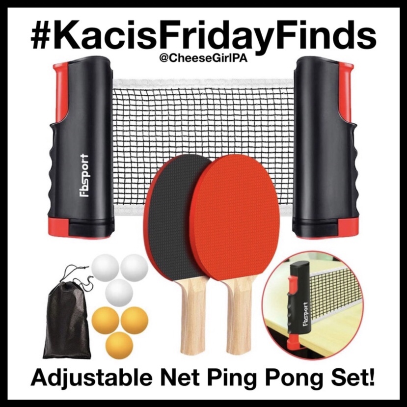 OK so technically this is a #KacisFridayFinds find courtesy of my husband! I mentioned to him recently that I was sad we gave away the ping pong table my mom offered to us when she was cleaning out her garage. I have lots of fond memories associated with that ping pong table circa high school years playing with friends in our garage. The issue was that we really did not have the space for it, so he donated it to a local charity. You might be wondering where this story is headed, but I promise it comes together!