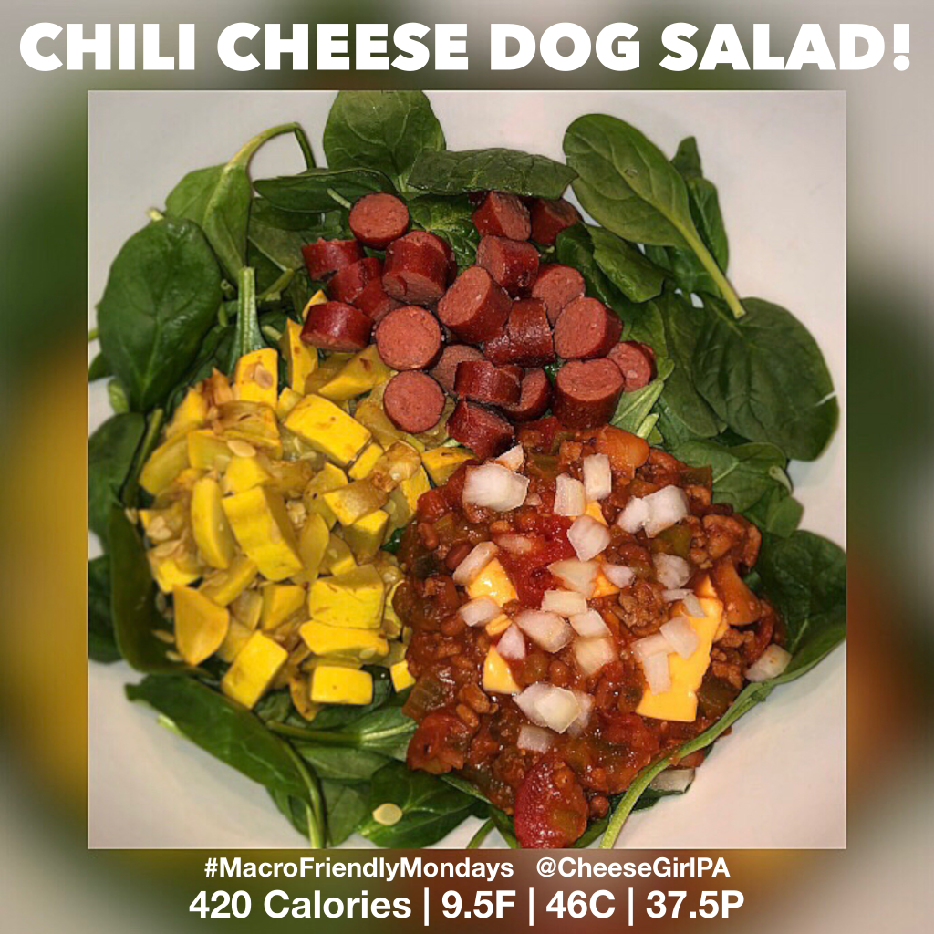 ❗️I meal prepped this so I cooked the chili and squash in a big batch, then divided each day. I wait to cook the hotdogs each day when ready to serve the salad.