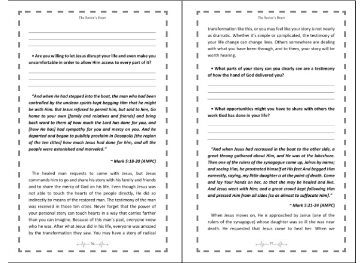 This is a devotional style book that pulls practical application from the lessons found in unpacking the Gospel of Mark. The formatting is set up so there is a section of scripture, my commentary on the passage, then questions designed to help the reader reflect on how the truth of God’s word applies in their own life so that they can implement it effectively. My commentary takes the section of scripture and explains it in the context of the time it was written as well as how it applies to the life of the believer in their faith walk in present times.